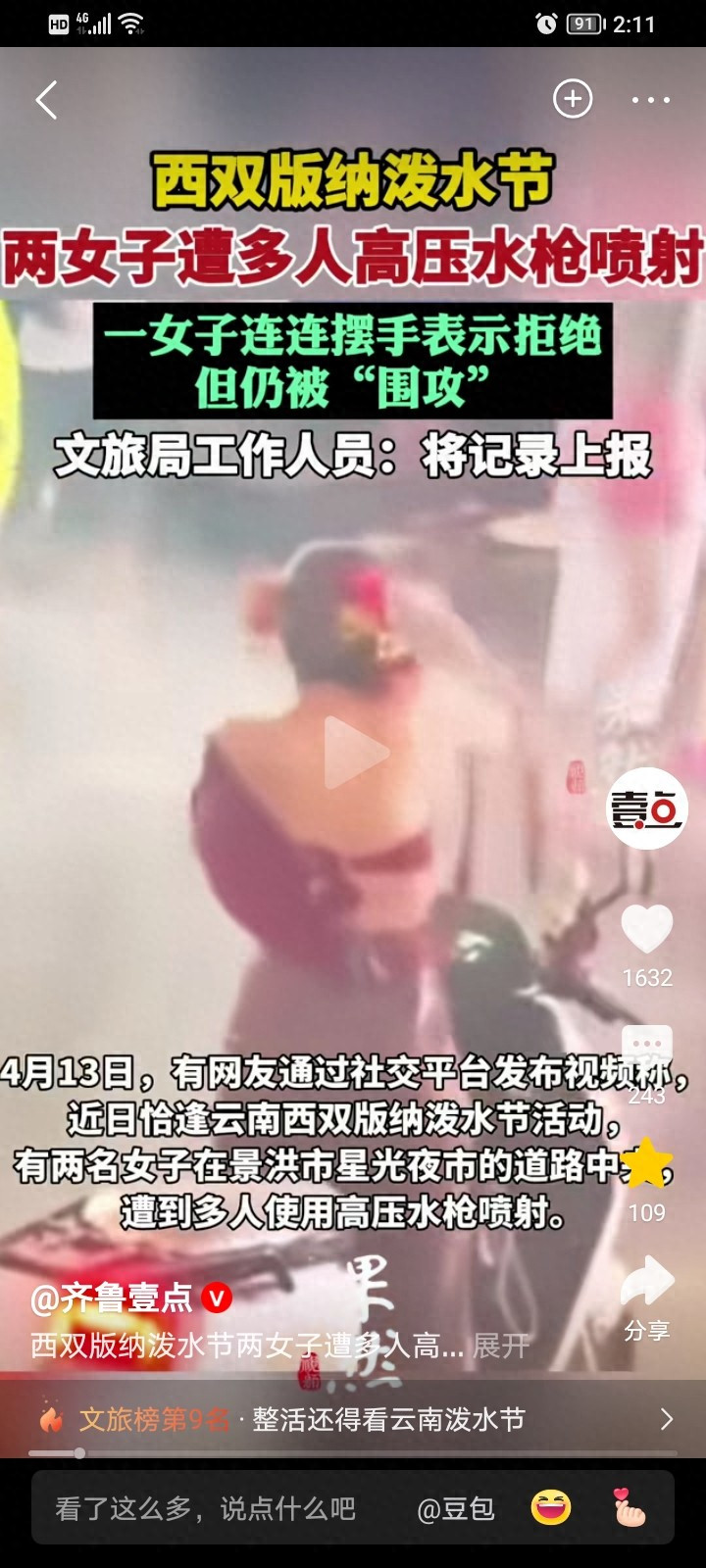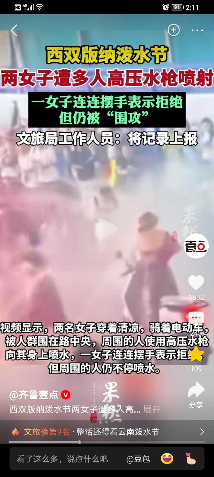 这两天,关于在西双版纳泼水节上,有两个衣着比较清凉的女子,在泼水节场地上被其他人“集体水枪”围攻的事情,引发大家的讨论和关注。